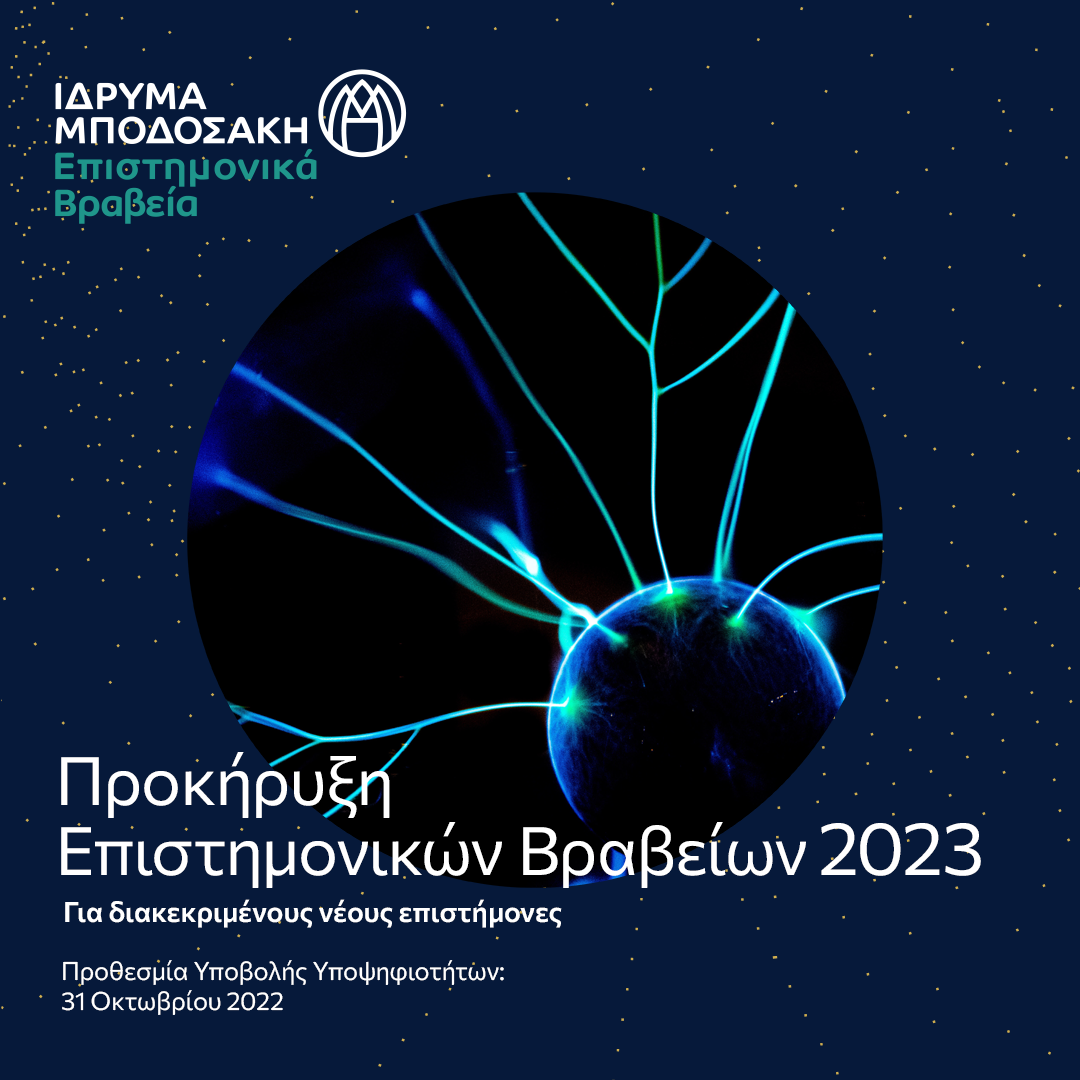 Δημοσιεύθηκε στοΠροκήρυξη Επιστημονικών Βραβείων Ιδρύματος Μποδοσάκη για διακεκριμένους νέους επιστήμονες έτους 2023